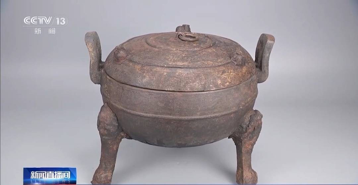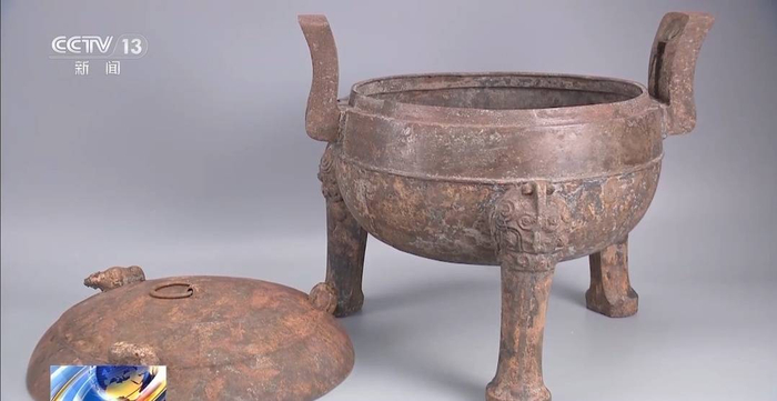 发掘出的一件子母口卧牛钮青铜鼎,花纹在武王墩青铜器群中属于上乘之作。出土前鼎盖就在原位,完整性、密封性良好。